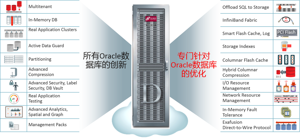 神州數(shù)碼登云數(shù)據(jù)庫一體機(jī)通過集成設(shè)計為Oracle數(shù)據(jù)庫帶來了卓越的性能、極佳的成本效益和極高的可用性。登云數(shù)據(jù)庫一體機(jī)采用支持云的現(xiàn)代化架構(gòu),內(nèi)含可橫向擴(kuò)展的高性能數(shù)據(jù)庫服務(wù)器、可橫向擴(kuò)展的智能存儲服務(wù)器(配有先進(jìn)的PCIe閃存)、使用持久性內(nèi)存的先進(jìn)存儲緩存以及連接所有服務(wù)器和存儲的云級RDMA over Converged Ethernet (RoCE) 內(nèi)部結(jié)構(gòu)。登云數(shù)據(jù)庫一體機(jī)采用獨有的算法和協(xié)議,在存儲、計算和網(wǎng)絡(luò)中實現(xiàn)了數(shù)據(jù)庫智能,因此,與其他平臺相比,能以更低的成本提供更高的性能和容量。它適用于所有類型的現(xiàn)代數(shù)據(jù)庫負(fù)載,包括聯(lián)機(jī)事務(wù)處理(OLTP)、數(shù)據(jù)倉庫(DW)、內(nèi)存分析、物聯(lián)網(wǎng)(IoT)、財務(wù)、游戲、合規(guī)性數(shù)據(jù)管理以及高效整合的混合負(fù)載。登云數(shù)據(jù)庫一體機(jī)部署簡單、快速,能為您極其重要的數(shù)據(jù)庫提供全面的支持和保護(hù)。